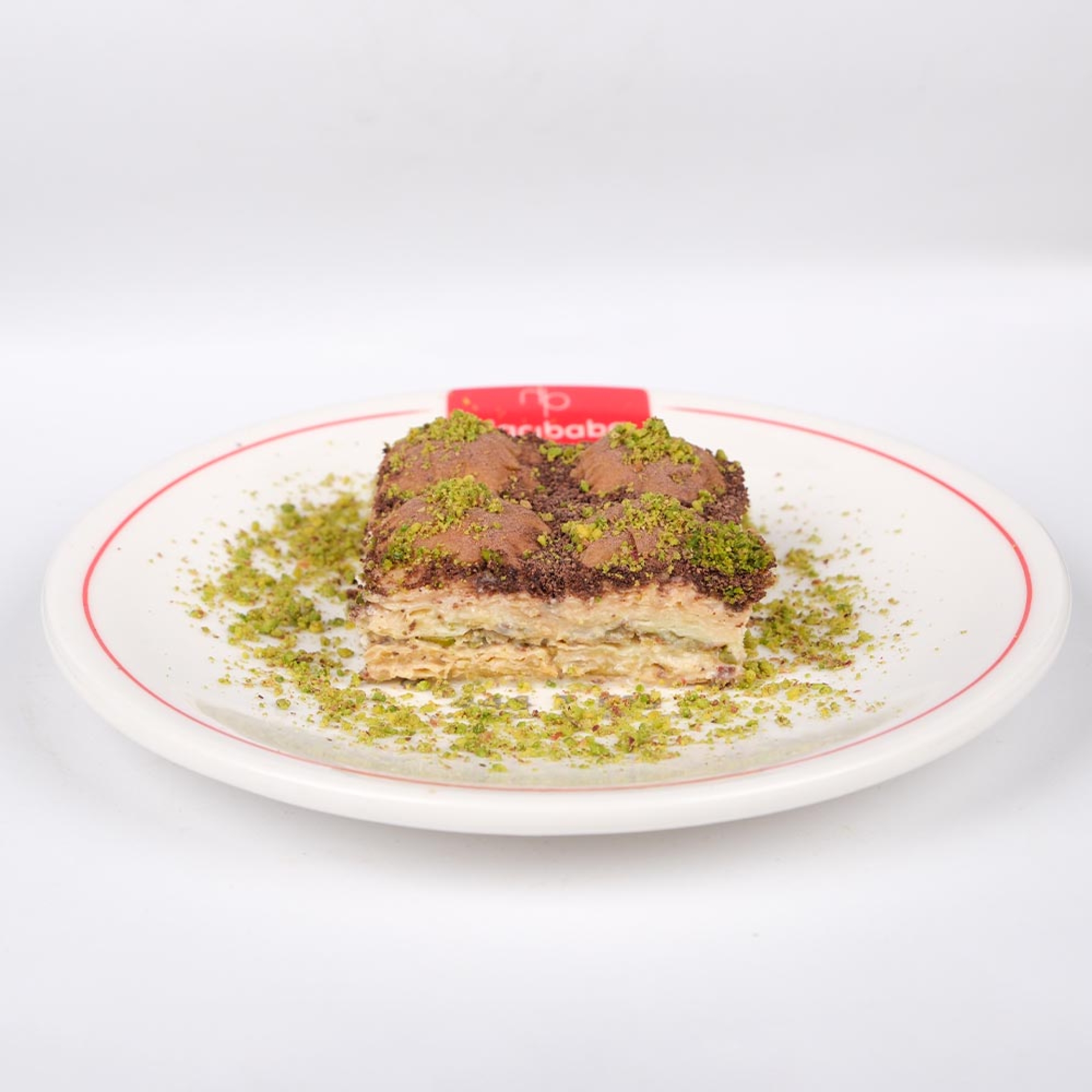 Fıstıklı Özel Baklava, Hacıbaba Pastaneleri’nin en özel tatlılarından biridir. İnce yufka katmanları arasına özenle yerleştirilen taze fıstık içi, bu baklavaya eşsiz bir lezzet katıyor. İnce dokulu yufka ve bol fıstık içi ile her ısırık, tatlı bir ziyafet sunuyor. Fıstık sevenler için muhteşem bir seçenek!