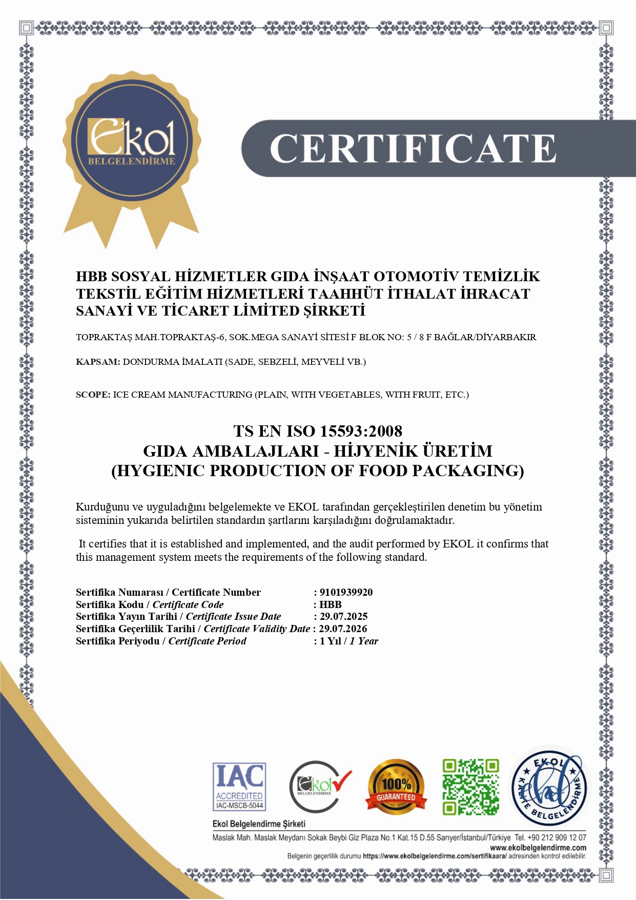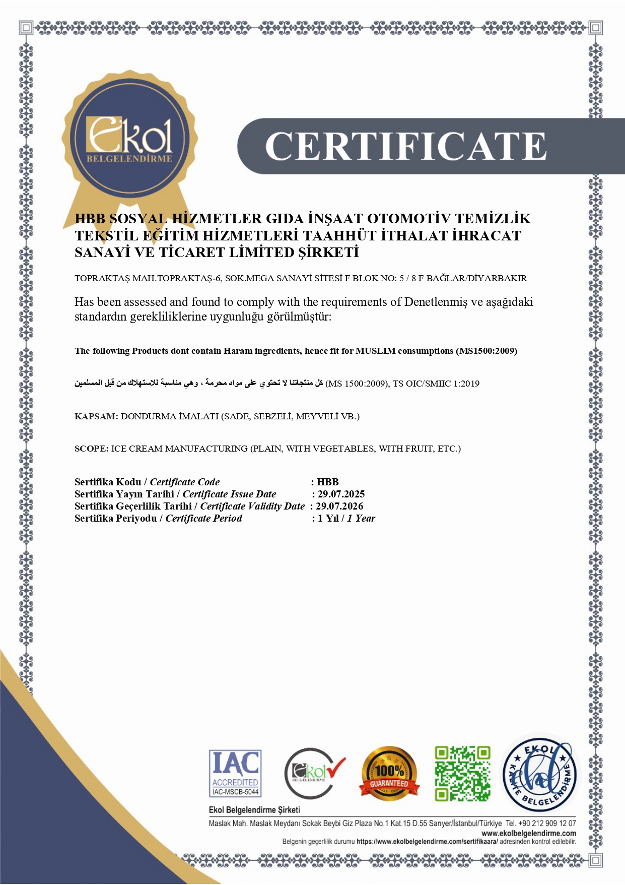 Vizyonumuz: 1984’ten bu güne coğrafyamızın yüzyıllara dayanan damak tatlarını günümüz ihtiyaç ve gelişmelerini göz önünde bulundurarak topraklarımızın bizlere sunduğu doğal ham maddeleri kullanıp sağlıklı ve hijyenik şartlarda en kaliteli ürünleri uygun fiyatlarla müşterilerimize sunmaktır.